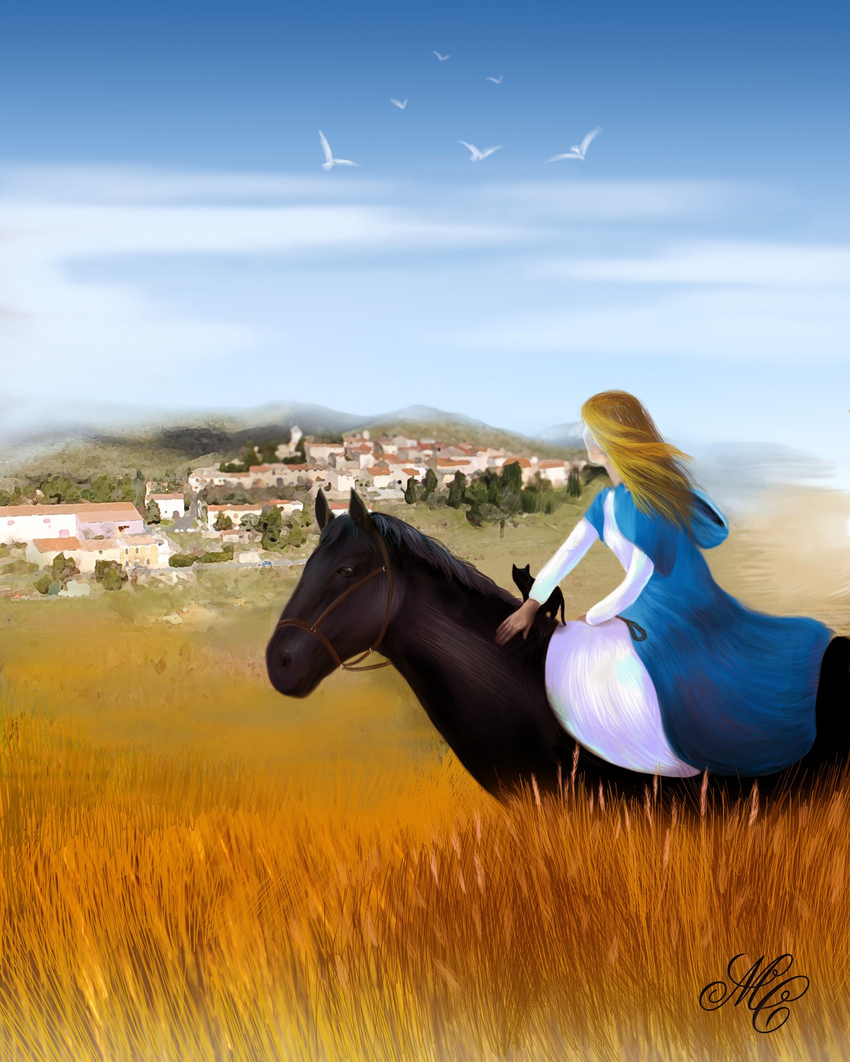 седлала Блейка, надела дорожный плащ, снятый с гвоздя, отворила тяжёлые ворота, вскочила на жеребца и, пустив его во весь опор, ускакала…