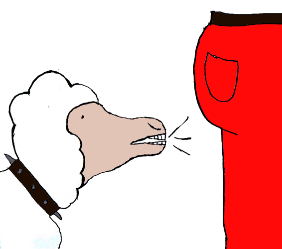 sheep. It was kicking and biting as if it did not want to follow the steps of its owner. It was a handsome animal, young and strong, with wool as white as snow. It was carrying a studded black leather collar, similar to those worn by lions at the circus.