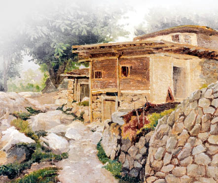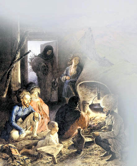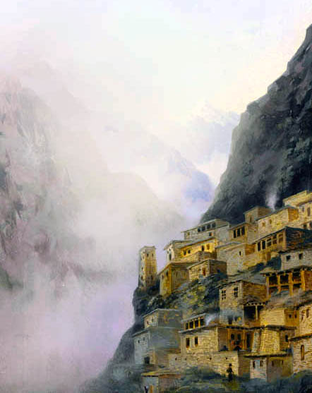 Я вновь в ауле маленьком, в глуши.Ни деревца… Хотя бы хилый кустик!Здесь всё во власти вековой тиши,На всём оттенок стародавней грусти.Меж скал давно знакомая рекаНевнятно вторит лягушачьей трели.Туман белей парного молока,Плывёт искать приют в глухом ущелье.Как озеро, затянутое льдом,Застыло небо, потемнели горы…Под плоской кровлей – старый отчий дом.Кизяк блинами на кривом заборе.Но строй неровный обветшалых стен,В бесстрашии застывших над обрывом,Берёт необъяснимой силой в пленИ манит ввысь стремительным порывом.В убогой сакле не ласкают глазНи мебель, ни фарфор рисунком тонким.На глиняном полу простой палас,А вместо белой скатерти – клеёнка.В прихожей – незатейливый очаг,Солома в нём горит зарёю алойИ ярко отражается в очахПрисевшей рядом тётушки усталой.