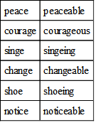 Some words ending in silent e retain the e before the suffix beginning with a vowel, to prevent a change in the pronunciation or to preserve the identity of the word. Notice the following words: