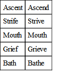 Our language contains a number of words in which there is a difference in the pronunciation of the final consonant when the word is used as a noun and as a verb. The final consonants in these words are the cognate sounds, f, v; t, d; th soft or th hard, s soft, or s hard. When the consonant sound is a soft sound, the word is a noun; and when the consonant sound is a hard sound the word is a verb. For example; use and use; breath and breathe; life and live, etc.