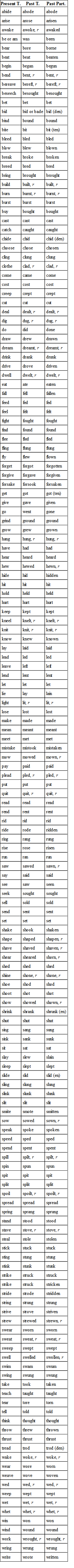 Here is a list of the principal irregular verbs—the present and past time forms and the past participle are called the principal parts of a verb.