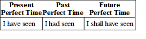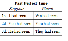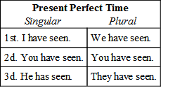 Each of these three time forms has a perfect form; that is, a time form which expresses an action as completed or perfected at the present time, or before some definite past or future time.