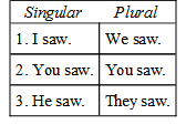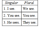 Select two verbs out of the following poem and write their six time forms, in the same manner as the time forms of the verb see are given in section 131.