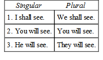 119. We denote future time by use of a verb phrase made by placing shall or will before the simple form of the verb.