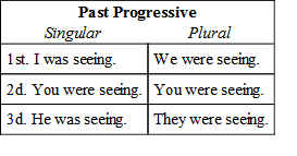 135. The past progressive time form describes an action which was continuing or progressing in the past. It is formed by using the past time form of the verb be and the present participle.