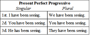 137. The perfect time forms also have a progressive form. There is a difference of meaning in the present perfect and its progressive form. You say for instance, I have tried all my life to be free. You mean you have tried until the present time and the inference is that now you have ceased to try. But, if you say, I have been trying all my life to be free, we understand that you have tried and are still trying.