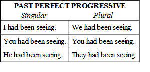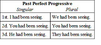 139. The past perfect progressive describes an action which was continuing or progressing at some past time. It is formed by using the past perfect time form of the verb be and the present participle.