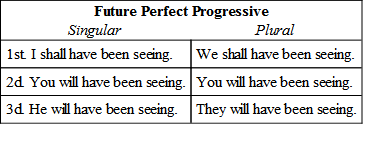 140. The future perfect progressive describes an action which will be progressing at some future time. It is formed by using the future perfect time form of the verb be and the present participle.