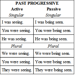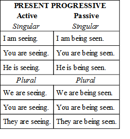 The present, past, future and all the perfect time forms of transitive verbs can be changed from active to passive. The progressive time forms can be changed into the passive, but it makes an awkward construction and should be avoided as much as possible. Occasionally, however, we find it worth our while to use these forms, as for example: