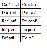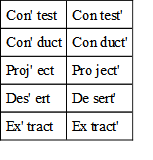 Many words differ in meaning according to which syllable receives the accent. Our spelling lesson for this week contains a number of these words.