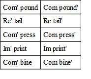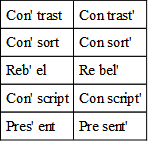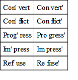 These words, when accented on the first syllable, are nouns; when accented on the second syllable, they are verbs.