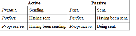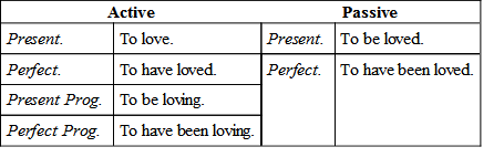 156. We have a number of different forms of the infinitive, both active and passive. Note the following table: