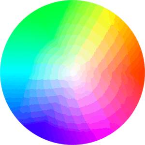 К примеру: в сочетании красного и зеленого, красный доминирует, рядом с ним зеленый имеет желтоватый оттенок, синий становится ближе к пурпурному.