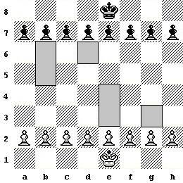 Белые и черные поочередно делали ходы. Белая Пешка с а2 на а4. Черная Пешка с b7 на b5. И тут они столкнулись друг с другом.
