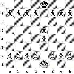 Собеседники стали наблюдать за тем, как проходило Пешечное сражение. Первыми, как и всегда, ходили белые – первая пешка двинулась вперед на два поля и встала на е4. Затем вперед двинулась черная пешка тоже на два поля и оказалась на е5.