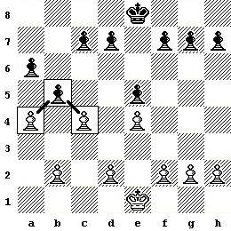 Белая Пешка на поле а4 стала угрожать черной Пешке на поле b5. Но эта Белая Пешка не набралась смелости, чтобы сразить Черную.