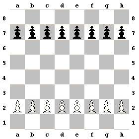 Белые Пешки встают на вторую горизонталь, а черные Пешки – на седьмую горизонталь.