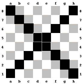 – А вот от угла к углу тянутся диагонали. Их больше, чем восемь. Есть самые длинные диагонали – они проходят от угла к углу через центр. А есть более короткие. Ты можешь сам внимательно посмотреть и поискать их на доске. Диагонали бывают белые и черные, – объяснил Белый Конь.