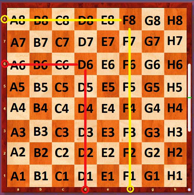 – А, понял! Это как адрес нашего дома и квартиры! Например, я живу в доме 6, а квартира 10. Я могу назвать и другие адреса полей на доске – f8, d6 … Ой, их так много! – мальчик радовался тому, что он понимает, как ориентироваться, и теперь не потеряется на шахматной доске.