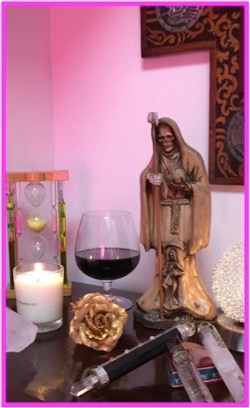 Для установления связи с силой Санта Муэрте, необходимо совершить специальный ритуал для того, чтобы Ее энергия вошла в имеющийся у нас образ, и мы смогли попросить у Нее то, в чем нуждаемся. Для достижения максимального эффекта рекомендуется провести этот ритуал в субботу поздно вечером.