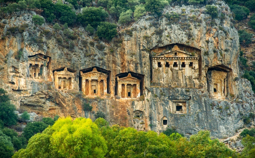 Ilustración 6 Famosas tumbas licias de la antigua ciudad de Caunos, Dalyan, Turquía