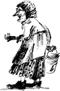 Скрипнула калитка, висевшая на одном гвозде, и показалась маленькая старушка с пустым ведерком.