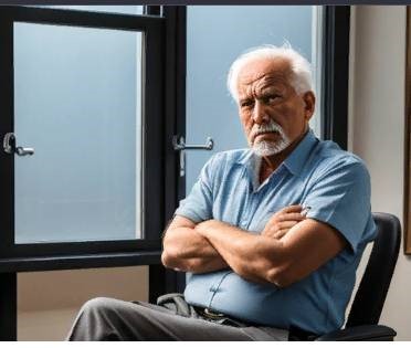 Старик сидел на высоком деревянном кресле с высокой спинкой, скрестив руки и ноги.