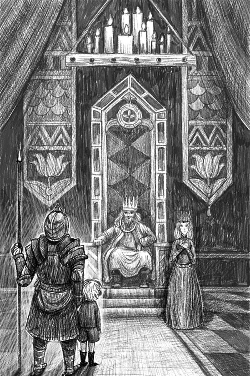 Около входа в тронный зал Лада притормозила. Она отряхнула платье, прибрала волосы, успокоила дыхание и заглянула внутрь. В центре зала на троне сидел седовласый король Русин. Его беспокойство выдавал только напряжённый взгляд. Рядом ходила взволнованная королева: