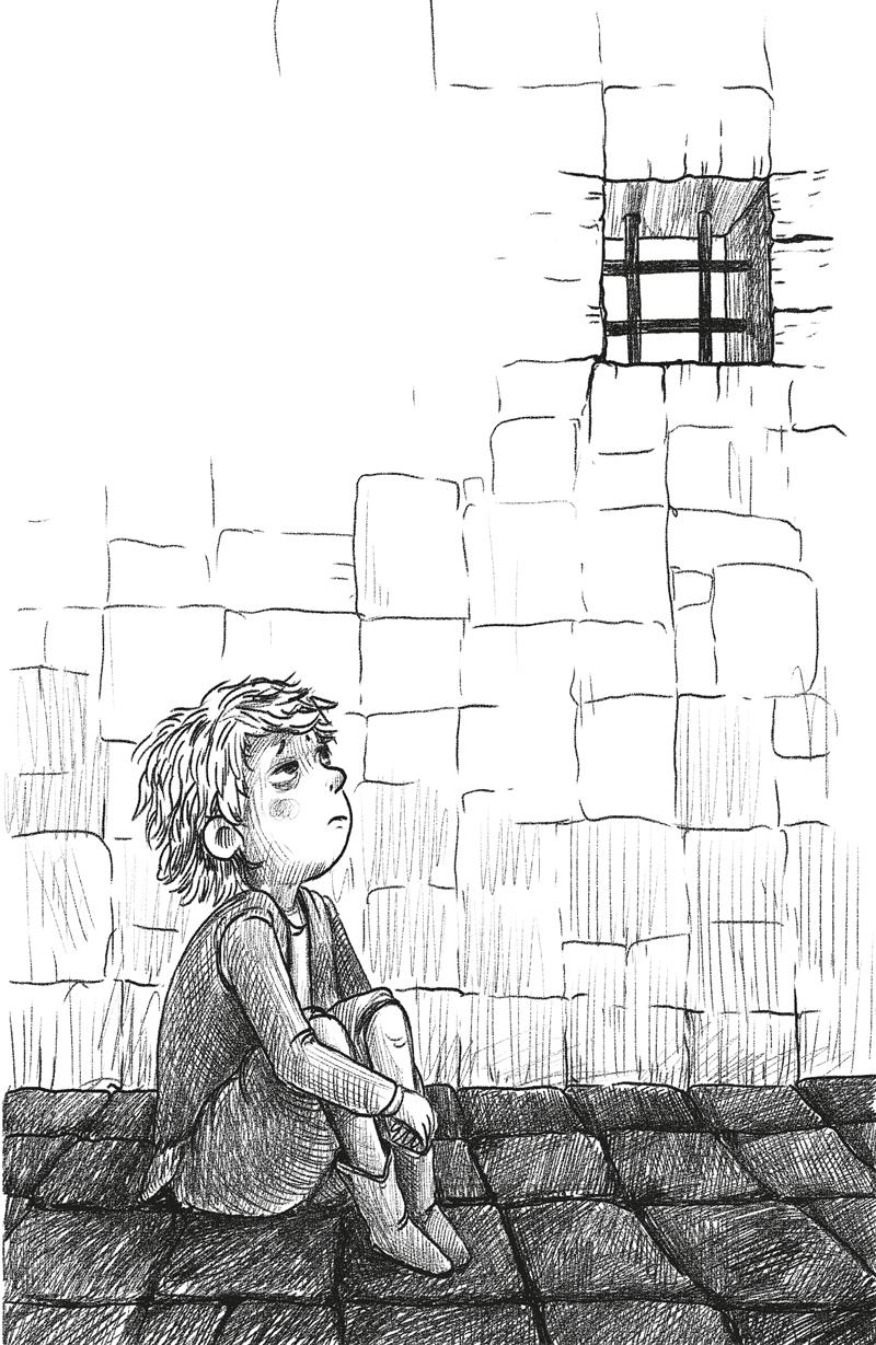 Мальчик сидел, прислонившись к каменной стене и подняв голову наверх. Он смотрел в маленькое окошко, где виднелся крохотный кусочек голубого неба. Услышав шаги и шорох, он повернул голову.