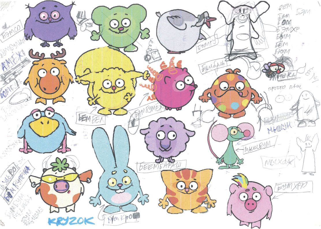 Илья глянул на материалы Салавата и сразу понял: вот оно! Мультипликационный сериал с круглыми героями, настолько простыми по форме, что их сможет нарисовать каждый ребёнок! Мир, в котором нет злодеев. Персонажи дружат, смотрят на звёзды и попивают чай. И пока Том и Джерри бьют друг друга сковородками и подрываются на динамите, мы создадим новый идеальный мир.