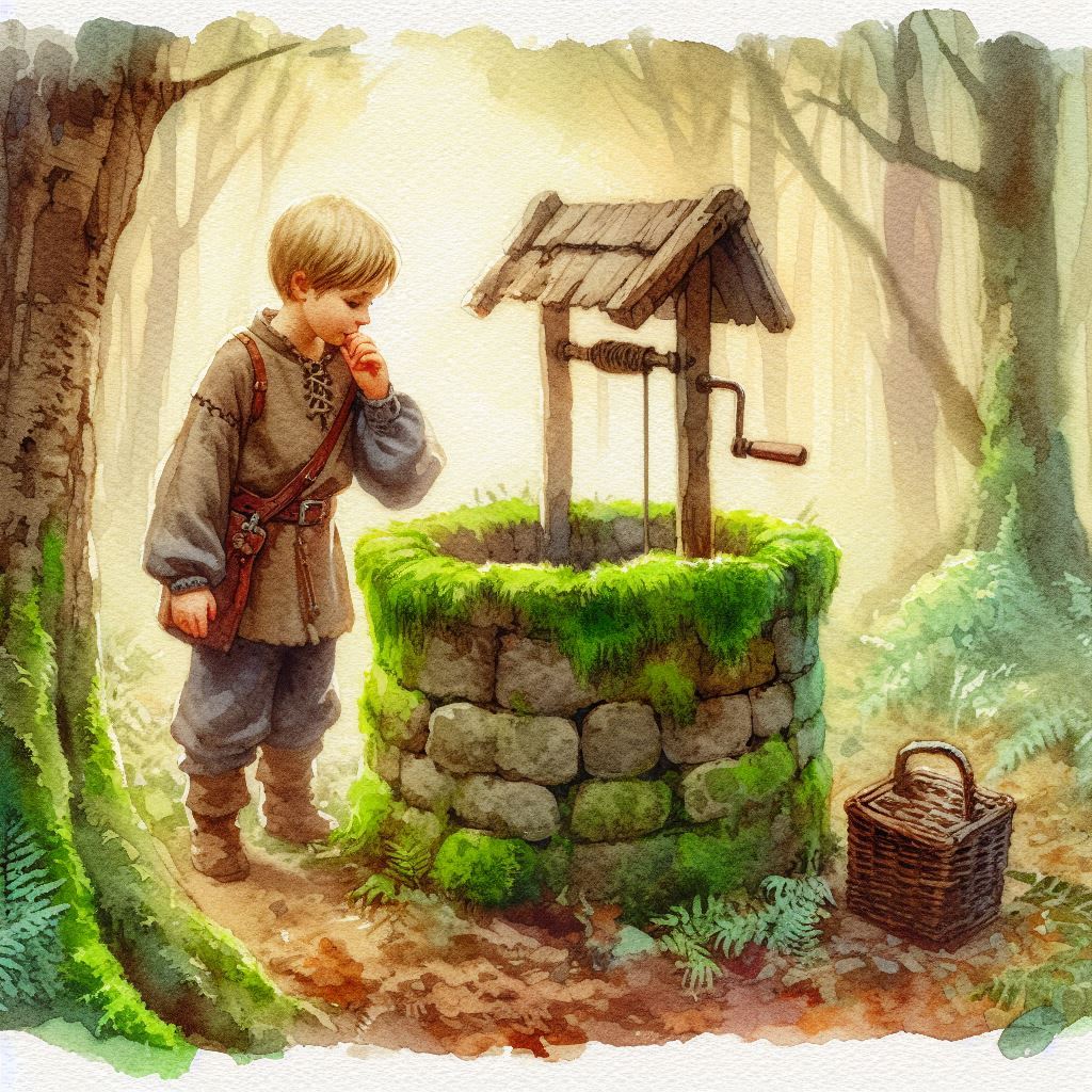 Однажды, гуляя по лесу, Пьер нашёл старый заброшенный колодец. Колодец был покрыт мхом и выглядел очень таинственно. Мальчик хотел рассмотреть его, но когда подошёл поближе, земля под ногами внезапно задрожала.