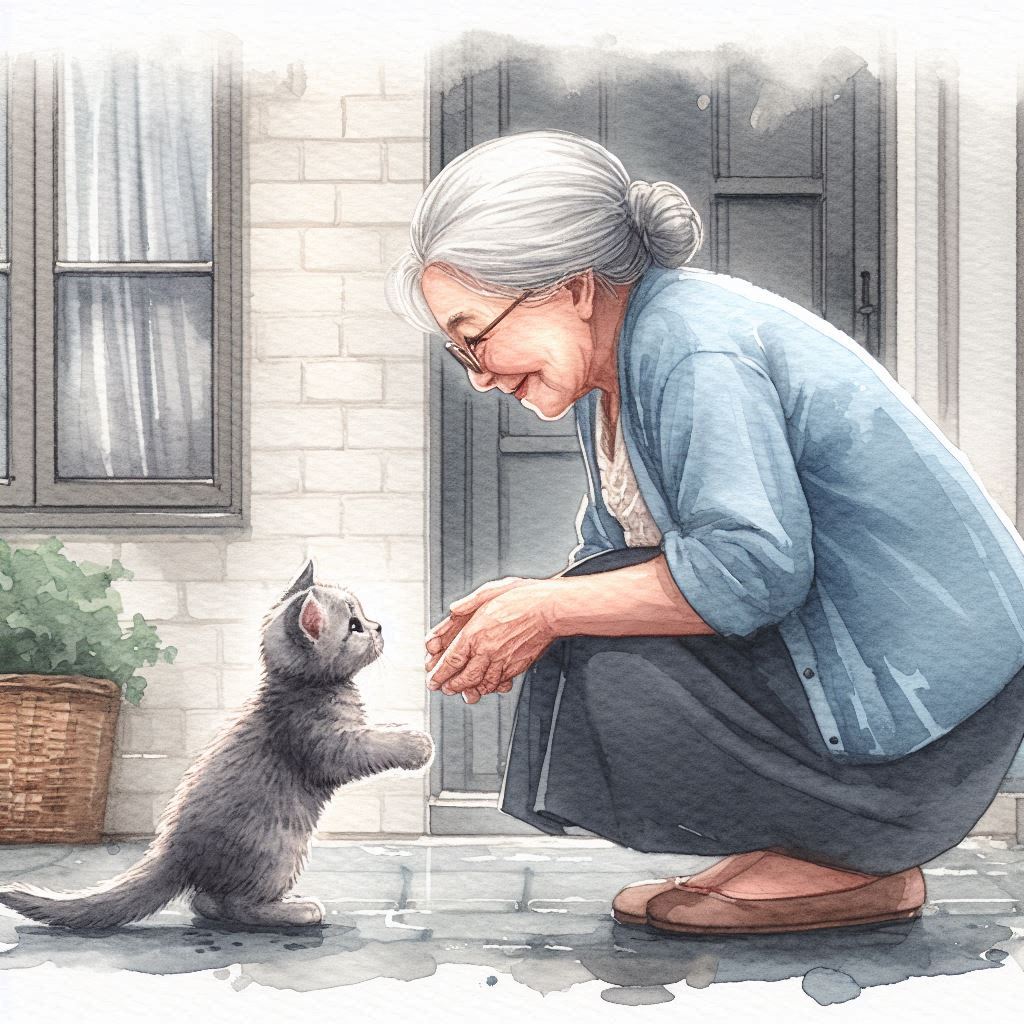 Однажды, в начале весны, когда снег уже начал таять, а птицы возвращались с юга, к бабушке прибежал маленький серый котёнок. Он был таким крошечным и беззащитным, что бабушка просто не смогла пройти мимо. Она взяла его на руки, прижала к себе и назвала Мурзиком.
