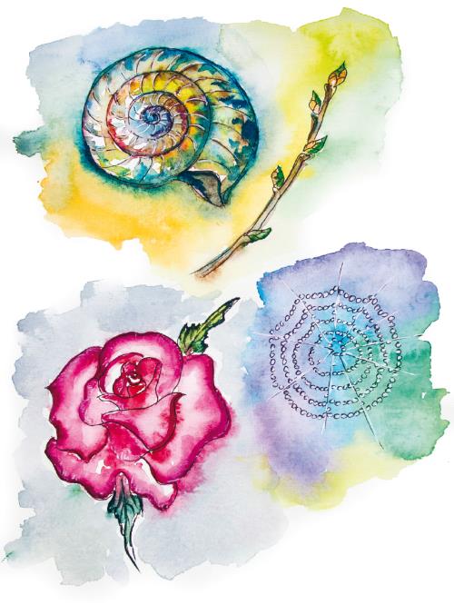 Спираль. Если вы держите раковину моллюска, корзинку подсолнечника, шишку хвойного дерева, цветок розы, ветку с листьями или смотрите на паутину, во всём этом присутствует спираль. Закрученная раковина причудливой формы с красивым орнаментом всегда привлекает глаз, она совершенна, и в ней соблюдён принцип золотого сечения. Не случайно столько украшений и ювелирных изделий сделано из раковин или напоминает её по форме. В витках спирали также проявляет себя ряд Фибоначчи (рис. 6).