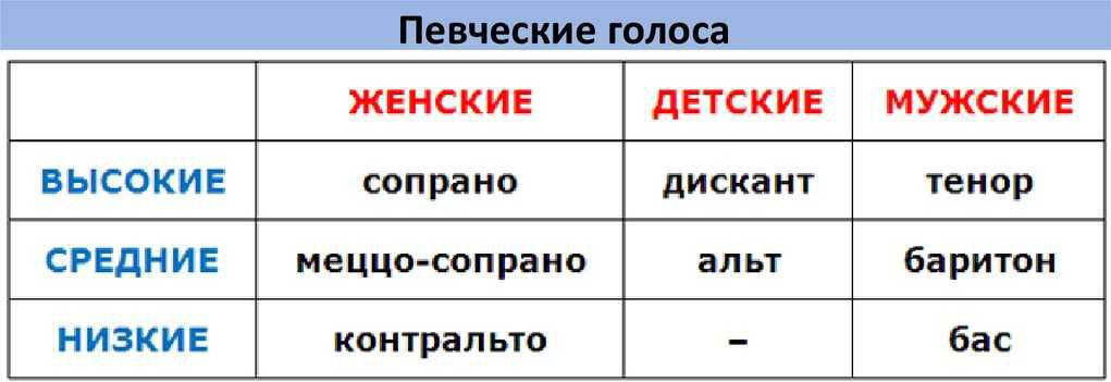 Задание. Рассмотрите иллюстрацию, определите все певческие голоса, о которых рассказывается в тексте.