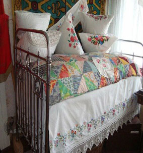 В один мешочек отбирают всё целковики, в другой полтиннички, в третий четвертачки, хотя с виду и кажется, будто бы в комоде ничего нет, кроме белья, да ночных кофточек, да нитяных моточков, да распоротого салопа, имеющего потом обратиться в платье, если старое как-нибудь прогорит во время печения праздничных лепёшек со всякими пряженцами или поизотрётся само собою. Но не сгорит платье и не изотрётся само собою; бережлива старушка, и салопу суждено пролежать долго в распоротом виде, а потом достаться по духовному завещанию племяннице внучатной сестры вместе со всяким другим хламом (фрагмент из поэмы «Мёртвые души»).