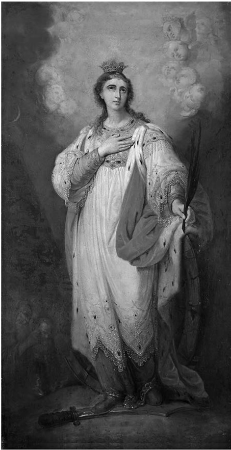 Рис. 3. В. Л. Боровиковский. Святая Екатерина. 1804–1809. Прессованный картон, масло. 176 × 91 см. Государственный Русский музей (Санкт-Петербург). Ранее – Казанский собор (Санкт-Петербург)