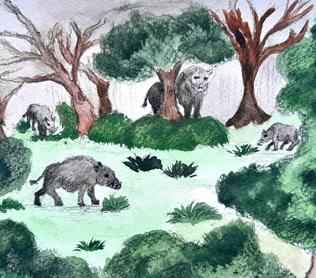 Лес тот – дом для всех зверей в нѐм. Лес тот люди обходили стороной. Говорили, что лес оберегают кабаны. Свирепые, страшные кабаны. Правда это или вымысел, никто не знает. Никто не решался входить в тот лес и тревожить его обитателей. Кабаны эти были чѐрного цвета, даже их детѐныши при рождении уже приобретали чѐрный окрас шѐрстки. Люди считали их особыми животными, верили, что эти существа обладают некой силой. Никто не мог отважиться даже близко подойти к лесу.