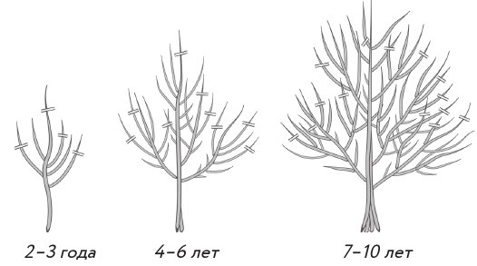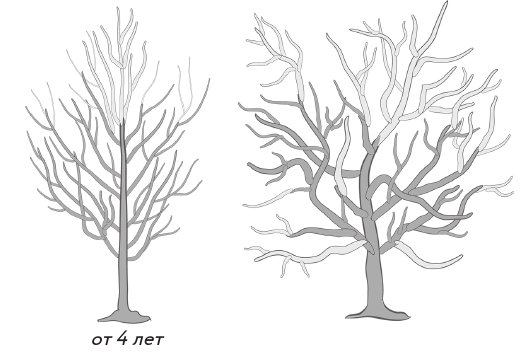 Обрезку сильно загущенного дерева растягивают на 2–3 года, чтобы оно не испытало шока от радикального удаления значительной части ветвей.