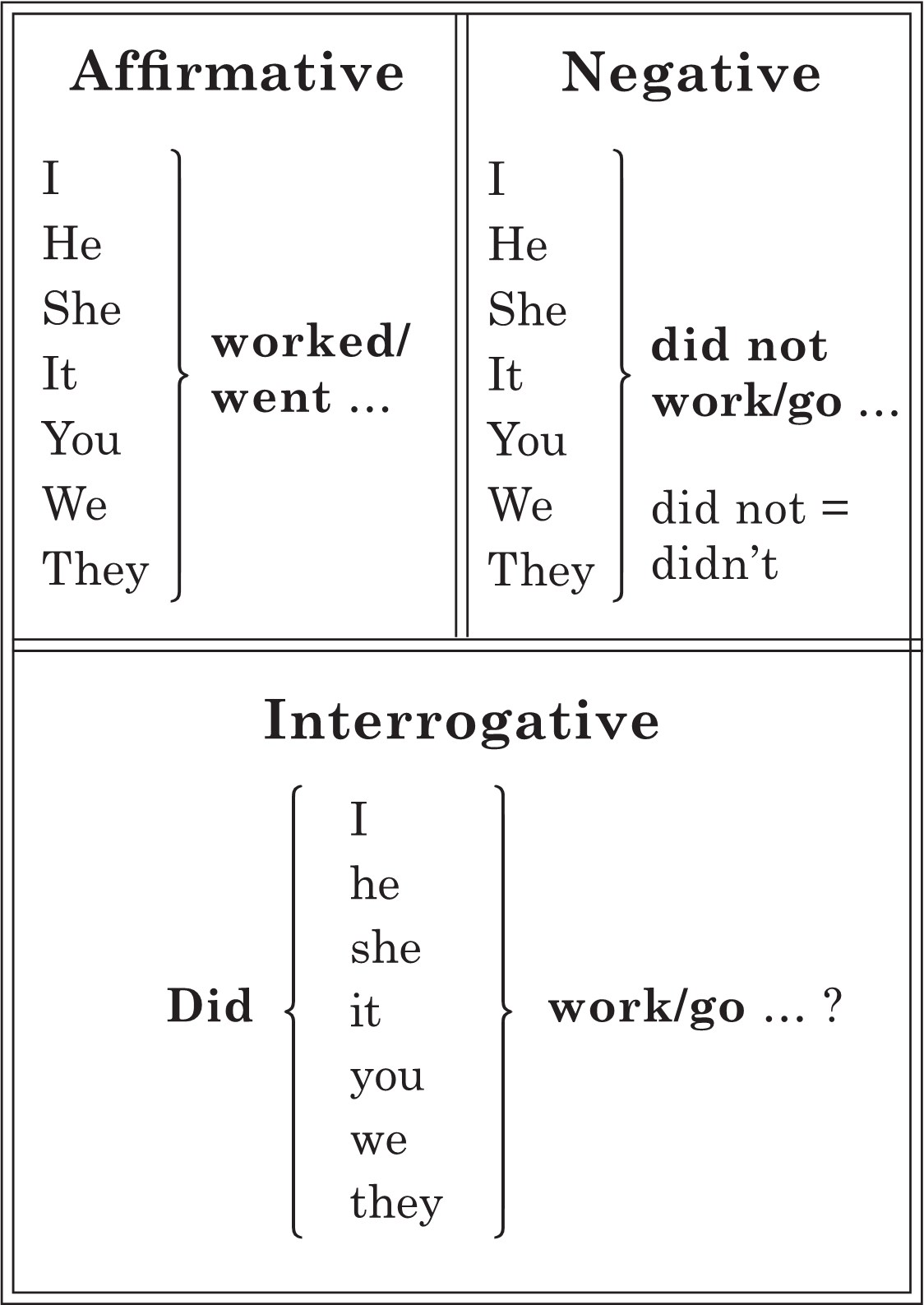 1. Write the verbs in three columns.