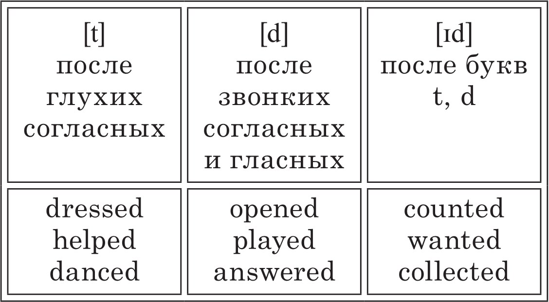 Правильные глаголы образуют прошедшее время путём прибавления окончания –ed или –d, которое читается как [t], [d], [ıd].
