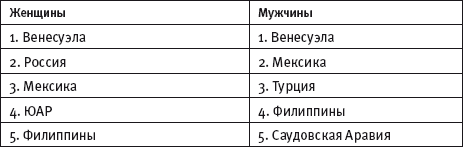 Компания Roper Starch Worldwide провела исследование отношения граждан разных стран к своему внешнему виду. Самыми озабоченными своей внешностью оказались венесуэльцы – 65 % женщин и 47 % мужчин честно признались, что «постоянно думают о своем внешнем виде». На втором месте среди женщин идут россиянки, затем жительницы Мексики и ЮАР. Российские мужчины, в отличие от российских женщин, вообще не попали в первую пятерку.