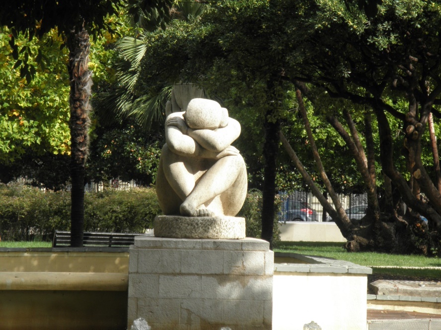 На аллеях сада установлены статуями и символические военные памятники: «Рука с урной» скульптора Андрэ Грека, в которой символически покоится земля потерянных территорий, посвященная репатриированным с французского Алжира, Поля Деруле́да французского поэта умершего в Ницце, работа скульптора Мишеля де Тарновского, а также фонтан «Три грации» украшенный работами Вольти, и его получившая широкое признание и медали на конкурсах скульптура «Спящая женщина»