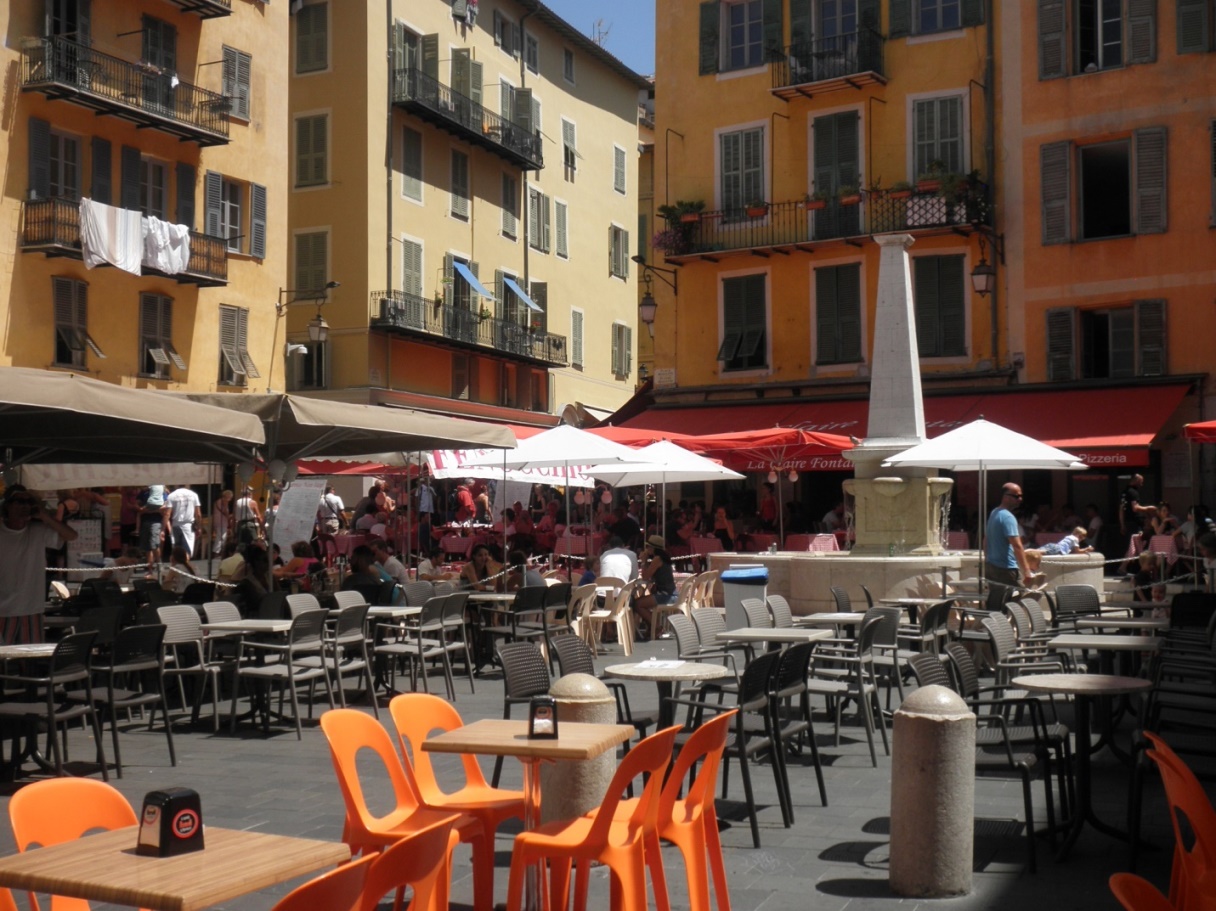 В отличие от других районов страны, где стиль жизни рассчитан на традиционное французское расписание дня, с приёмом пищи в строго отведённые для этого часы, рестораны Ниццы, находясь под влиянием международной клиентуры работают целый день и кормят посетителей без остановки кухни на перерыв между временем обеда и ужина.