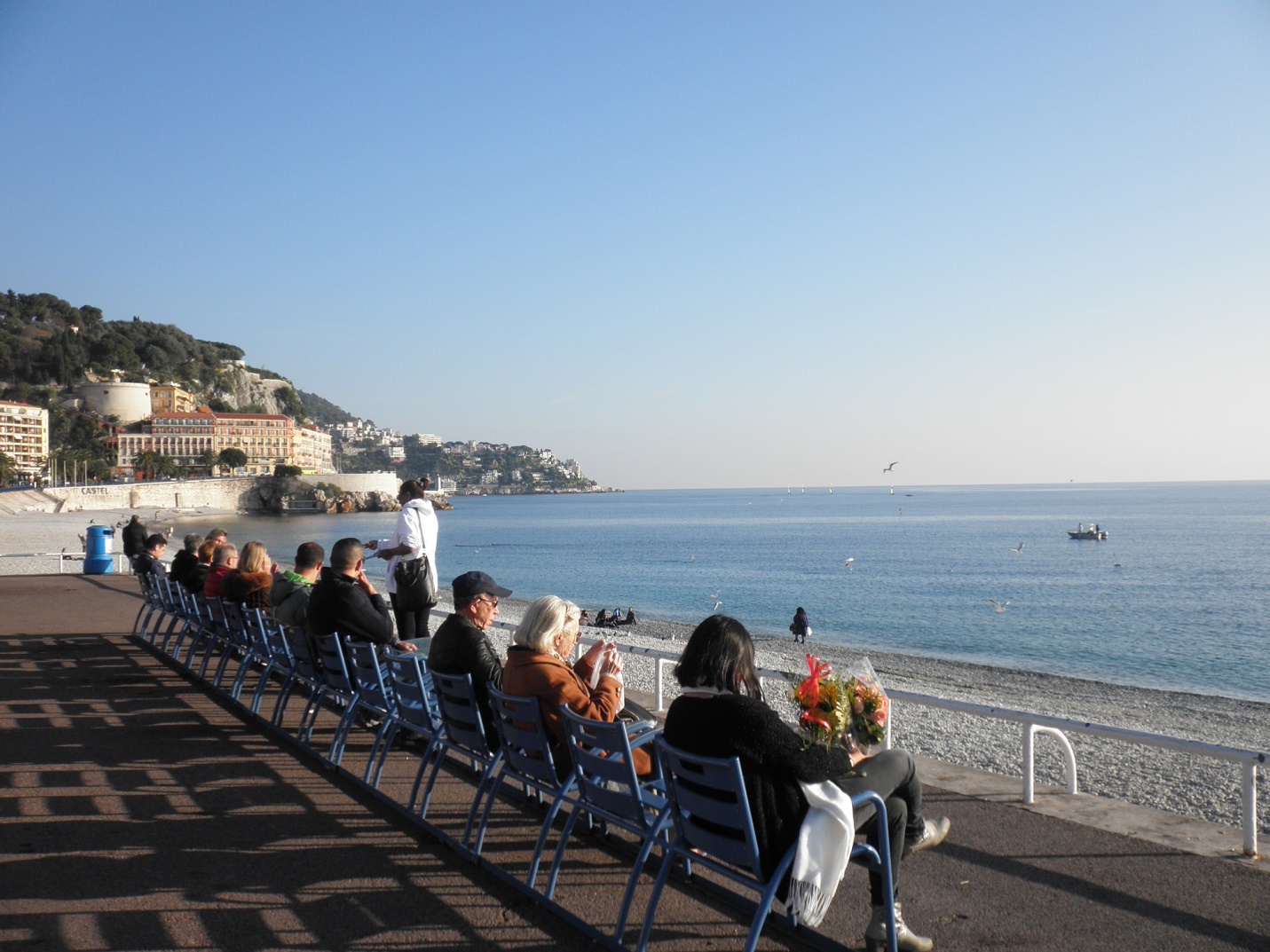 Так как граница с Италией через полчаса езды на поезде, то итальянцы из приграничных областей приезжают на выходные в Ниццу, а французы из Ниццы ездят в Италию. Такой отдых «по местному» популярен и недорог. Благодаря ему можно увидеть и различие менталитетов этих граничащих между собой стран. В частности, быть шикарной «по-итальянски», а это очень любят пожилые итальянки – одеваться зимой в шубы. Так как в Ницце температура зимним днём +15 С ходить в шубе довольно утомительное и жаркое занятие. Но красота требует жертв! Носят шубы. Под пальмами, на набережной. Очень колоритно смотрится. Но не застёгивают. Не мороз всё-таки.