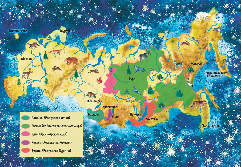 В этой книге ты найдёшь истории о созвездиях, светилах и других небесных обитателях, которые придумали народы, живущие в Сибири и на Дальнем Востоке: эвенки, кеты, хакасы, буряты и алтайцы. И даже если тебе пока не довелось бывать в тех прекрасных краях, ты повстречаешь в пришедших оттуда историях много знакомых героев. Ведь все мы ходим под одним и тем же небом.