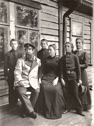 1900 г. Тихий Берег. Семья Владимира Михайловича. Слева направо: Владимир, Владимир Михайлович, Петр, Наталья Петровна, Екатерина, Ольга