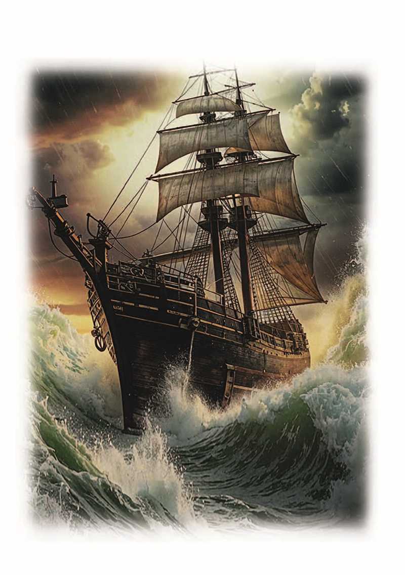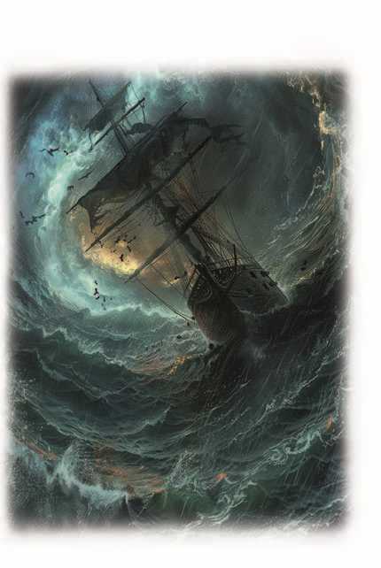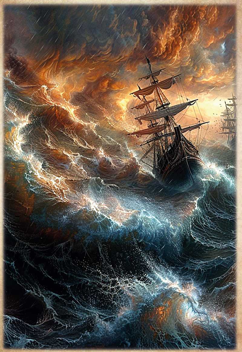 Уж пятый век живёт легенда,Что вызывает трепет в насПри созерцании смятенном,Нас будоража непременно,Когда штормит в полночный час.Зовёт стихия вдохновеньем,Всё мрак завесой затянул,Готовясь к светопреставленью,Зевс молнию, сверкнув, метнул,Разрезав с треском небесаИ море всё до дна пронзя.Блистают трепетно зарницы —Чуть виден мрачный силуэт,Бледнеют рядом чьи-то лица,Но нет, привиделось, лишь свет…И началось… грозой играя,Ветров властитель призываетМорских стихий мощь роковых,Небесных вод и вод земных,И воды вместе все мешая,В лихой торнадо превращая,Что набирает свою мощь,Готовый буйствовать всю нощь.И свищут ветры урагана,Поднявши волны океана,В раскатах грома виден зрак,Как отворенье судных врат,Армагеддона репетиция —Всем правит божия десница…И сквозь отверсты небеса,Нежданной карой всем грозя,И все мы, вольно иль невольно,Подвластны силе сей юдольно…Луна лишь скроет лик свой томный,И снова мрак наступит полный,Чтоб ярче молниям блистатьИ темень ночи освещать…Средь всполохов в ночи темнея,В лохмотьях парусов на реях,Ничто благое не суля,Вдруг виден остов корабля,Легко скользящий над волнамиИ, багровея парусами,Без якорей и без надеждыНесёт свой дух в волнах мятежный,С огнями Эльма по краям,Летит навстречу всем ветрам…Но вдруг, со всполохом иным,Растает в небе наважденьем,То есть недоброе знаменье —Предупреждение живым…Корабль-призрак – сказка ль это?Морских историй фаворитСтрах суеверный сеет щедроИ мистикой своей пленит.Веков былых тревожа мифы,Не отведём им место сказки,Но осторожно в суть их вникнем,Запоминая их подсказки.И зная мир наш многомерныйО параллельностях вселенной,Миров, сквозь кои есть ходы,Порталы есть и есть мосты,Где время как бы заплутало,А кое-где и вовсе встало,Вполне возможно – так бывает,Туда нежданно попадаетКорабль, поезд, человек,Там провождая целый век,Где нет ни времени старенья,Ни жизни долгой утомленья,Незрим и быстрый переход,Туман внезапно окружает,Густая дымка всё скрывает,И вот другой уж небосвод.Ловушка времени блуждаетИ произвольно пропадает,Несчастных прихватив с собой,Ломая мирозданья строй,Но по причине, нам безвестной,Вновь возвращает их телесно,А те не знают, что прошлоБез них, бывает, лет так сто.Иль призрак, в облаках плывущий,Являет город в небе сущий,Или фрегат скользит в ветрах,Блуждая где-то в облаках,Гонимый там нездешней Силой,Для нас земных непостижимой…И надо бы ещё сказать,О кораблях чумных… под статьЛетучему Голландцу,Им в гавань тоже не пристать —То позаботились британцы,Коль судно шло из дальних мест —В нём нет чумы иль всё же есть?Закон ввело Адмиралтейство:На выстрел пушечный корабльНе смел приблизиться, на рейдеКоль сорок дней не простоял,Лишь после порт его пускал.И неспроста закон писали,Написан кровью тот закон,Иль вымирали городами —Суровость нужная времён.А чумный борт эскадры гналиВ Атлантику от всех портов,И залпы бегство подгоняли —Уйти на милость волн-ветров.И шёл отверженный корабльНавстречу гибели своей,Вдаль унося с собой заразу,Чтоб сгинуть где-то вместе с ней.И множество таких судов,Носили ветры в океане,Пока болезни, глад и скорбьСих обречённых не прибрали.А корабли могли годами,Белея мёртвыми костями,Под погребальный вой ветровИ колыбельность вечных снов,Скрипя задумчиво снастями,Бродить потерянно морями…Под рынд
