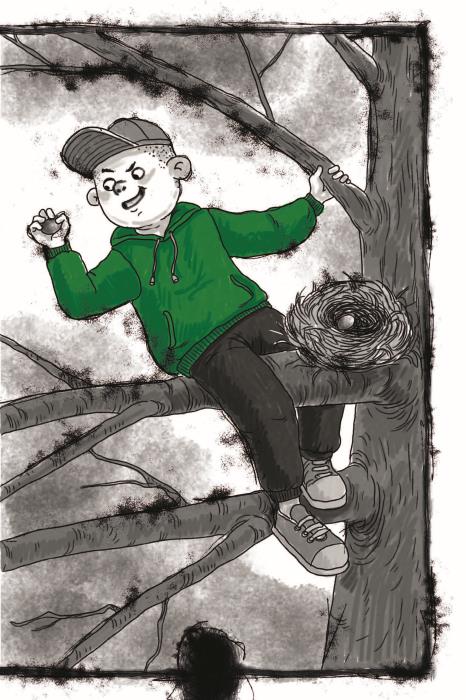 Поднимется мальчик по дереву к самому гнезду, ногами за ствол зацепится покрепче – и яйца разглядывает. А потом руку протянет, возьмёт одно и о ствол – трщ! – разобьёт.