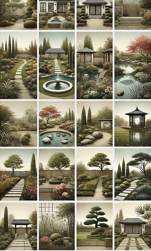 Восточный стиль. Включает в себя традиции японских и китайских садов. В японских садах большое значение уделяется водоемам, камням и мху, а китайские сады славятся извилистыми дорожками и мостиками.